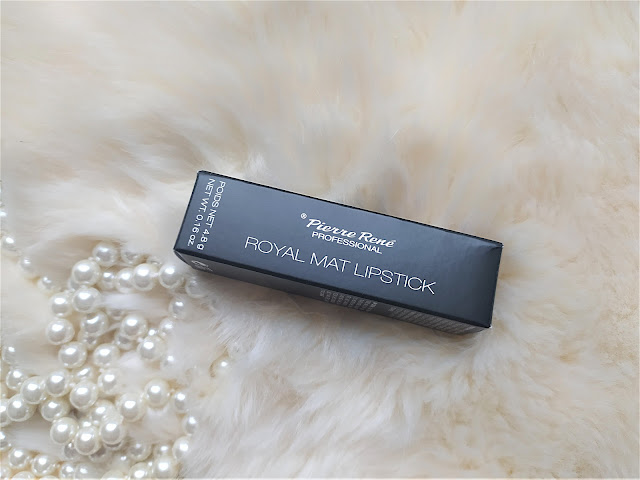 PIERRE RENE - pomadka matowa ROYAL MAT LIPSTICK. Łączy w sobie delikatne cząsteczki pudrowe i nawilżające oleje dla efektu matowych, ale nawilżonych i miękkich ust. Pokazałam Wam ją tutaj, w boxie Purebeauty.pl. Jest to numer 24 "Hot Marsala".  Tak zwana ciemna wiśnia w brązowym pigmentem. Kosztuje około 30 złotych. Jest zapakowana w czarne, dość efektowne pudełeczko, kartonik.